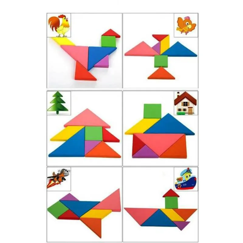 রঙিন কাঠের ট্যাংগ্রাম পাজল বাচ্চাদের চিন্তাশক্তি ও সৃজনশীলতা বাড়ায়। 🌈